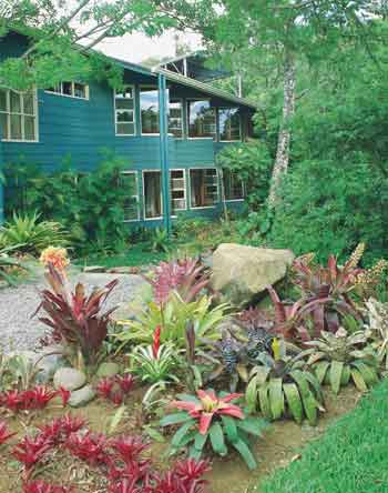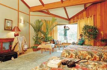 The dining room with its cloud forest mural, abundant tropical flora, and contemporary design is the perfect setting for enjoying a unique a la carte cuisine lovingly created especially for Monteverde by Hugo "Perla" Salas, the person responsible for the meals at all our lodges. The rooms at the Lodge are designed to put you "in the forest" while protecting you from the mist and strong wind so characteristic of the area. All are spacious with solar heated hot water private baths. Many of our guests find that their most enjoyable time in Costa Rica is spent in the Monteverde Lodge Gardens. Emphasizing ferns and bromeliads, we have chosen native plant species that replicate the natural cloud forest and attract its fauna. A running stream, pond and small waterfall provide a habitat for riverine birds and a host of reptiles and amphibians. Carefully placed benches provide a comfortable place, offer privacy and/or panoramic vistas to observe the wildlife, read, write, or just wile away the hours. Reflecting our continuing commitment to minimum impact and rational use of resources, Monteverde Lodge was the pioneer hotel in the area in garbage separation for recycling.