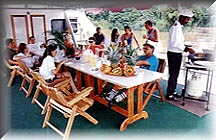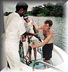the evenings. Itinerary may vary somewhat from trip to trip, but typically the three day, two night adventure begins only a few minutes after leaving San José as the air conditioned van slices through Braulio Carrillo National Park and then heads toward Costa Rica's scenic northern zone to Sarapiquí. There we board a fast boat for the jungle ride up the Sarapiquí River to the San Juan River, continuing to the Colorado River where lunch is waiting aboard the air-conditioned "Rain Goddess" at Bird Island, Blue Wing's private six acre wildlife preserve. From the island, we cruise silently down the Río Colorado to Barra Colorado with an opportunity to visit the picturesque village before continuing to nearby Samay Lagoon where the houseboat will anchor the first night. Want to try some fishing? No problem! Boats, tackle and guide are available. Next morning, the tour continues down the Tortuguero Canal to Tortuguero National Park, one of the most important nesting sites of the Green Turtle (July-Oct), with plenty of time to explore the park, visit the village or perhaps get in some more fishing time. The final day includes a visit to the Ranger Station at Jalova Lagoon and a tour through the jungle trails with your naturalist guide before continuing on to meet your air conditioned van for the ride back to San José, with stops at a banana plantation and Braulio Carrillo National Park on the way. And like the fishing packages, guests on the nature tours will enjoy gourmet meals and an open bar for the entire trip. We make the tour with a minimum of six and maximum of 12 guests. If three days isn't enough, just let us know. We will arrange a group tour to suit your preference. Rates and conditions for season November 1, 1997 to November 1, 1998. 5 days, 4 nights, 3 full days fishing 7 days, 6 nights, 5 full days fishing Additional fishing days $350 per day/per person. Additional days nonfisherman $110 per day/per person. This rates will apply to groups arriving after November 1, 1997, when booked after August 15, 1997. All reservations made before July 31, 1997 will pay the previous rate. ![]() Inclusive: Not included: Conditions of payment: 2. Reservations will be held for 15 days pending deposits. 3. Balance of trip payment is due 60 days prior to departure date. 4. If an angler cancels more than 60 days prior to departure, only the deposits submitted will be forfeited. 5. If cancellations is received less than 60 days prior to departure, but more than 30 days prior to departure, 50% of the total price of the trip is forfeited unless a replacement angler can be found for the same dates. 6. If cancellation is received 30 days or less prior to departure, the