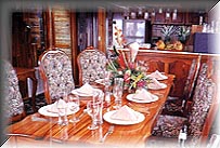 in rare local woods, and six staterooms. Four staterooms on the upper deck